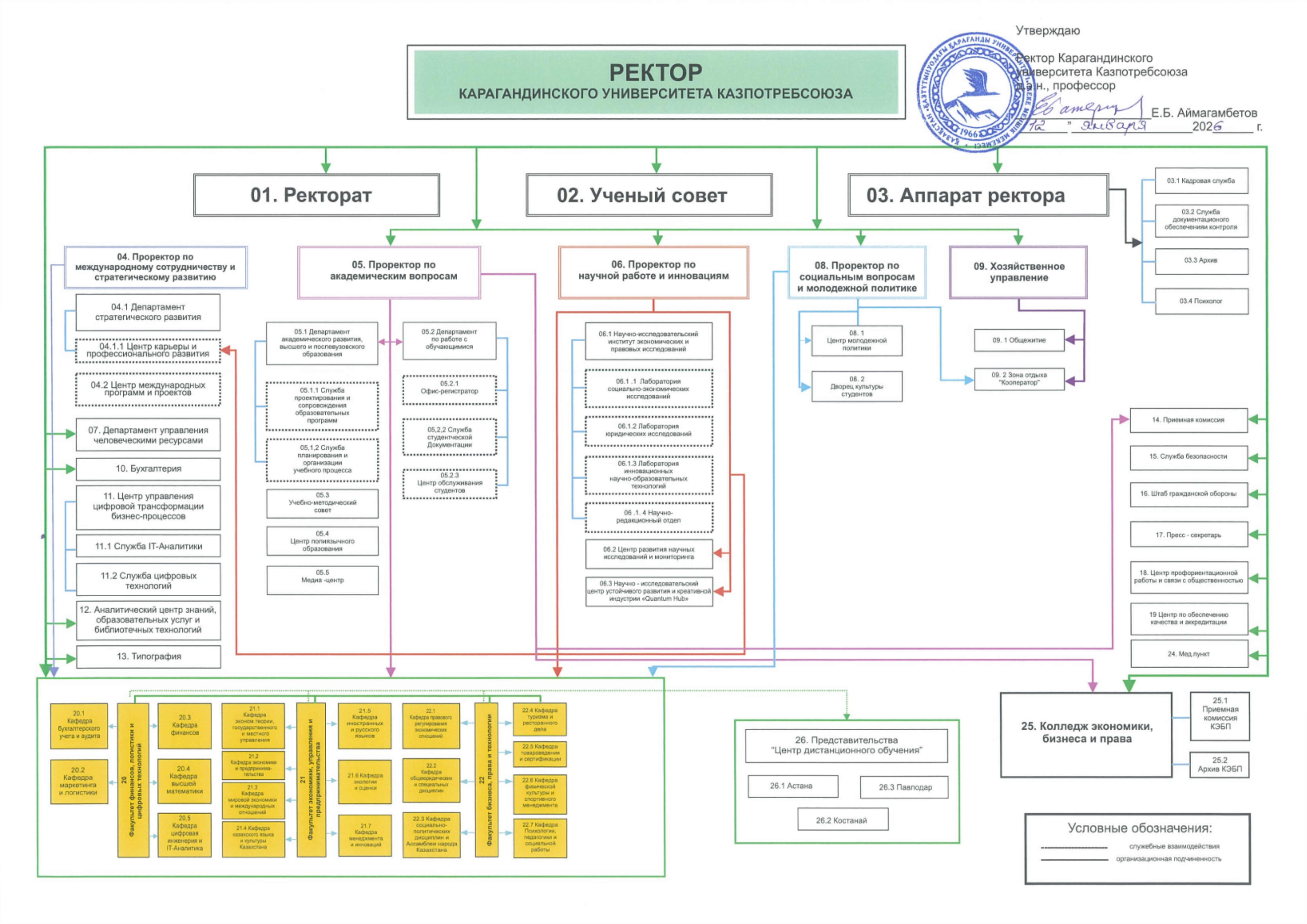 Миссия Карагандинского университета Казпотребсоюза – реализация образовательной и научной деятельности как основы профессионального и личностного роста конкурентоспособных специалистов для устойчивого развития региона.