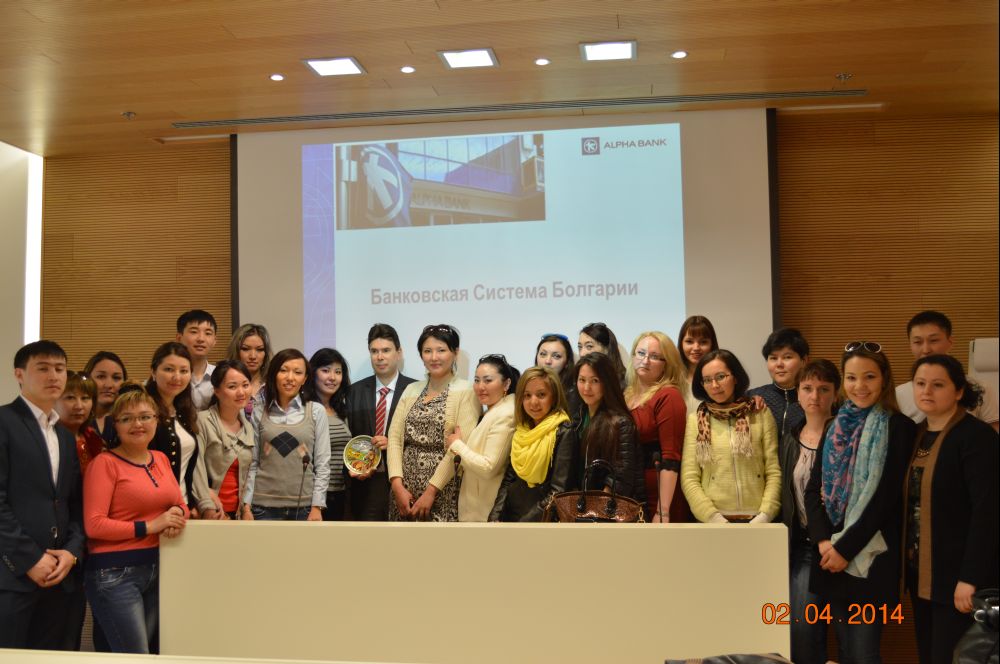 С 31 марта по 7 апреля 2014 года магистранты 2 курса обучения специальностей 6М050800 «Учет и аудит»», 6М050900 «Финансы», 6М070300 «Информационные системы», 6М090800 «Оценка» прошли научную стажировку в Софийском университет имени Святого Климента Охридского (Болгария) по теме «Современное учетно- финансовое и информационное обеспечение и оценка бизнеса в период глобализации». Магистранты прослушали лекции известных болгарских ученых: доктора PhD Тодора Попова (Институциональная экономика в контексте учетно-финансовой деятельности), доктора PhD Димитра Стефанова (Оценка бизнеса: прикладной аспект), доктора PhD Елеонора Станчева (МСФО, МСФА) и др. Практическая составляющая стажировки была организованна в Национальном банке Болгарии, коммерческом банке, страховых компаниях, «ALPHA BANK» и др. Вторая половина дня была посвящена магистрантами проведению научных исследований в библиотеке университета FEBA, а также изучению культурного наследия Болгарии.