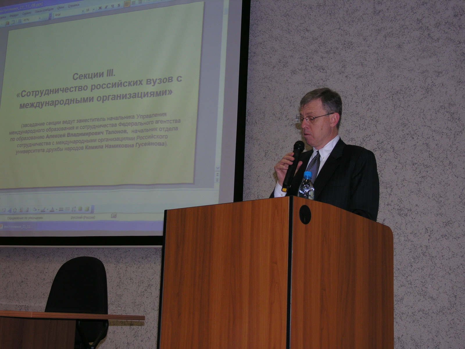 20-21 ноября 2008 года представители университета приняли участие в Совещании проректоров российских ВУЗов по международной деятельности «Вопросы подготовки национальных кадров для зарубежных стран в контексте развития экспорта образовательных услуг российских высших учебных заведений». Программа пленарного и секционных заседаний.