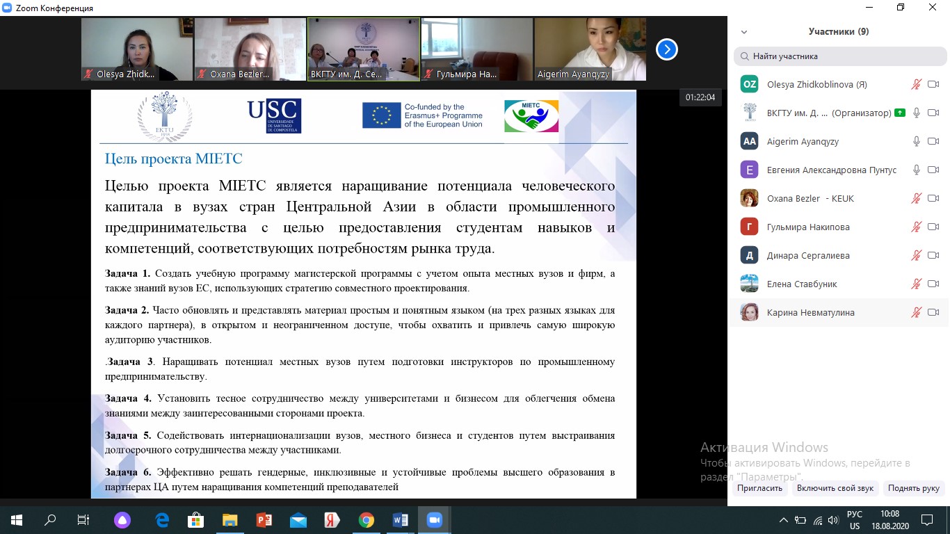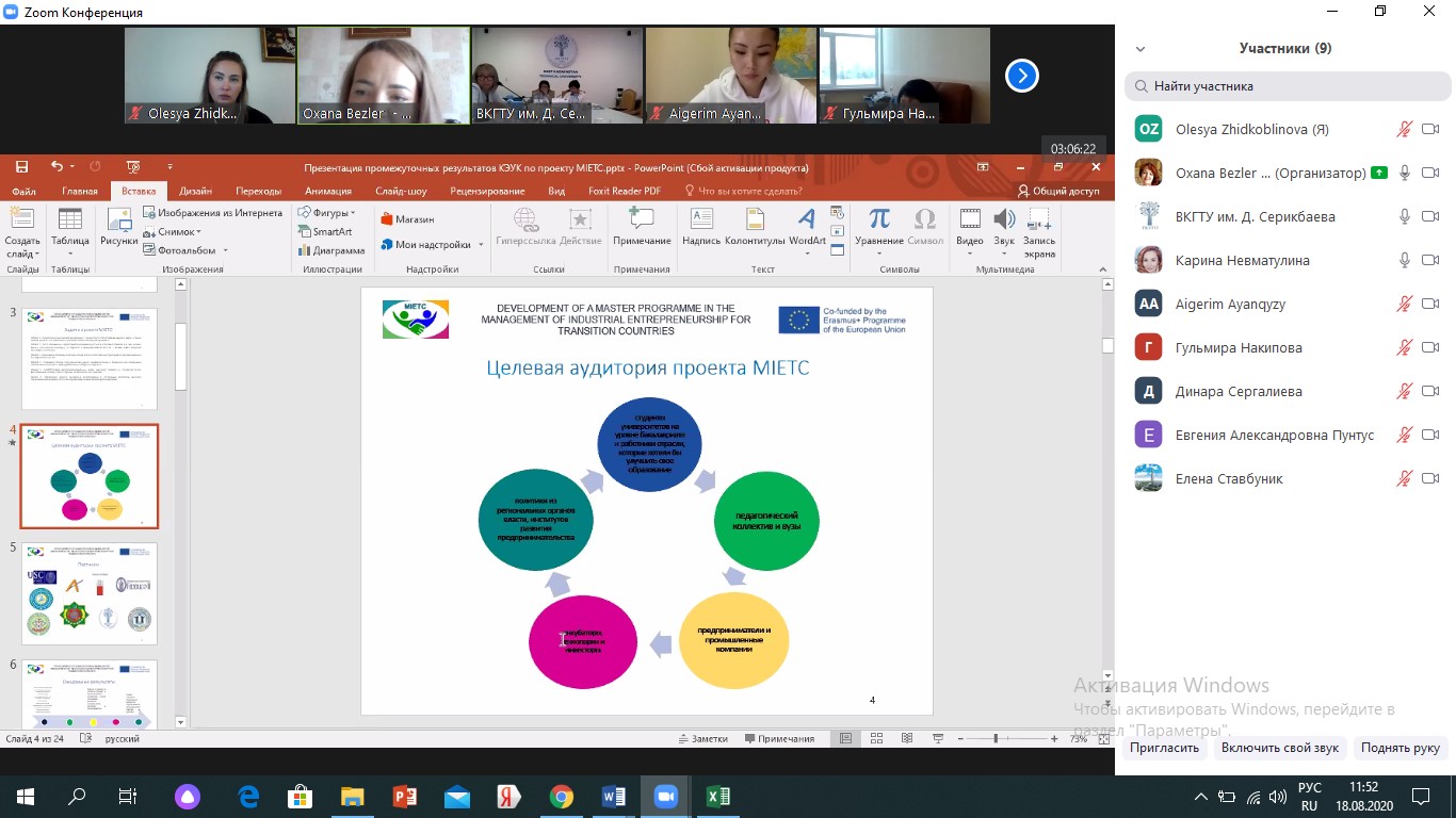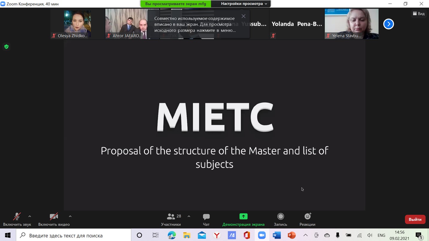 Онлайн встреча по диссеминации в рамках проекта «Разработка магистерской программы по управлению промышленным предпринимательством для стран с переходной экономикой (MIETC)»