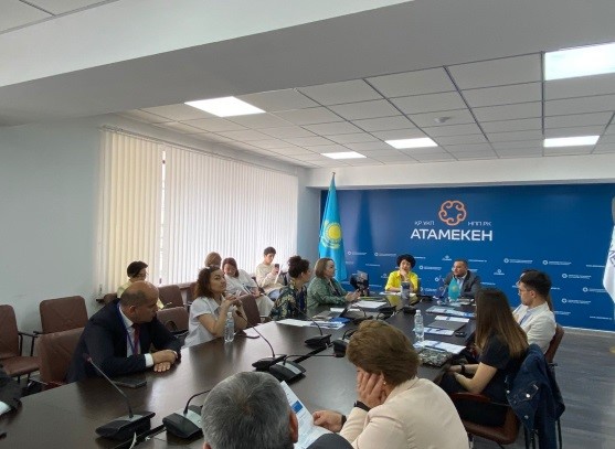 В ходе продвижения магистерской программы в первой части мероприятия – World café состоялась выездная деловая встреча с представителями Национальной Палаты предпринимателей «Атамекен», в результате которой были определены и озвучены векторы дальнейшего сотрудничества по поддержке в продвижении новой программы. В обсуждении приняли участие представители государственных органов, бизнес среды, региональные представительства НПП «Атамекен», партнеры проекта MIETC Италии, Испании, Словении, Таджикистана, Туркменистана.
